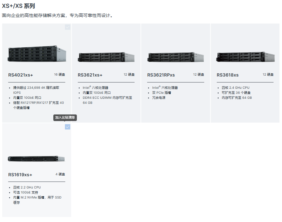 推荐机型: RS1221RP+、RS3621xs+ 等