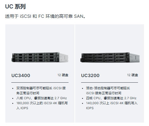 | UC 系列 | 高可用 SAN 控制平台 | 双控制器架构、iSCSI/FC 支持、高可靠性 | 虚拟机主存储、关键业务系统、企业主存储 |