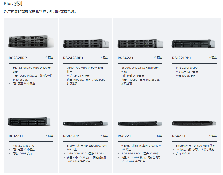 提示: 在实际采购前,应综合考虑网络带宽、冗余设计、磁盘兼容性及未来扩展预留。群晖官网提供了驱动兼容列表、扩展单元指南及网络配置建议,建议作为选型依据。