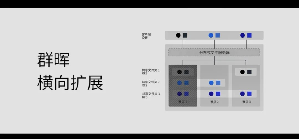 为了解决服务和数据的可用性,群晖将推出横向扩展技术。这可以应对单节点,甚至多节点离线的状况。并可以灵活扩展容量,以及高效应用设备传输效能。